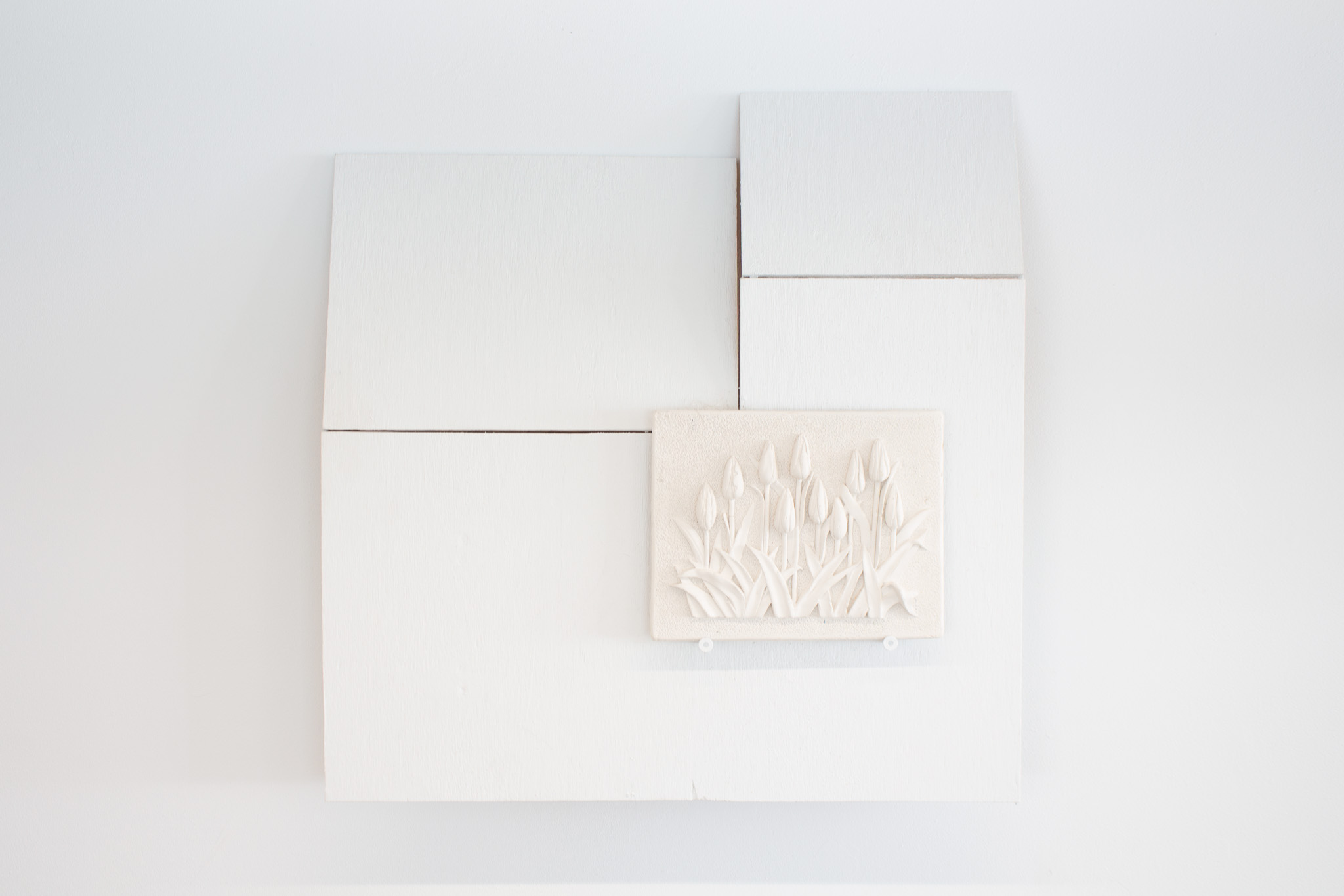 Excelsior Woolen Mills, 2023, plaster on wood panels, 68.5 x 72.5 x 11cm.