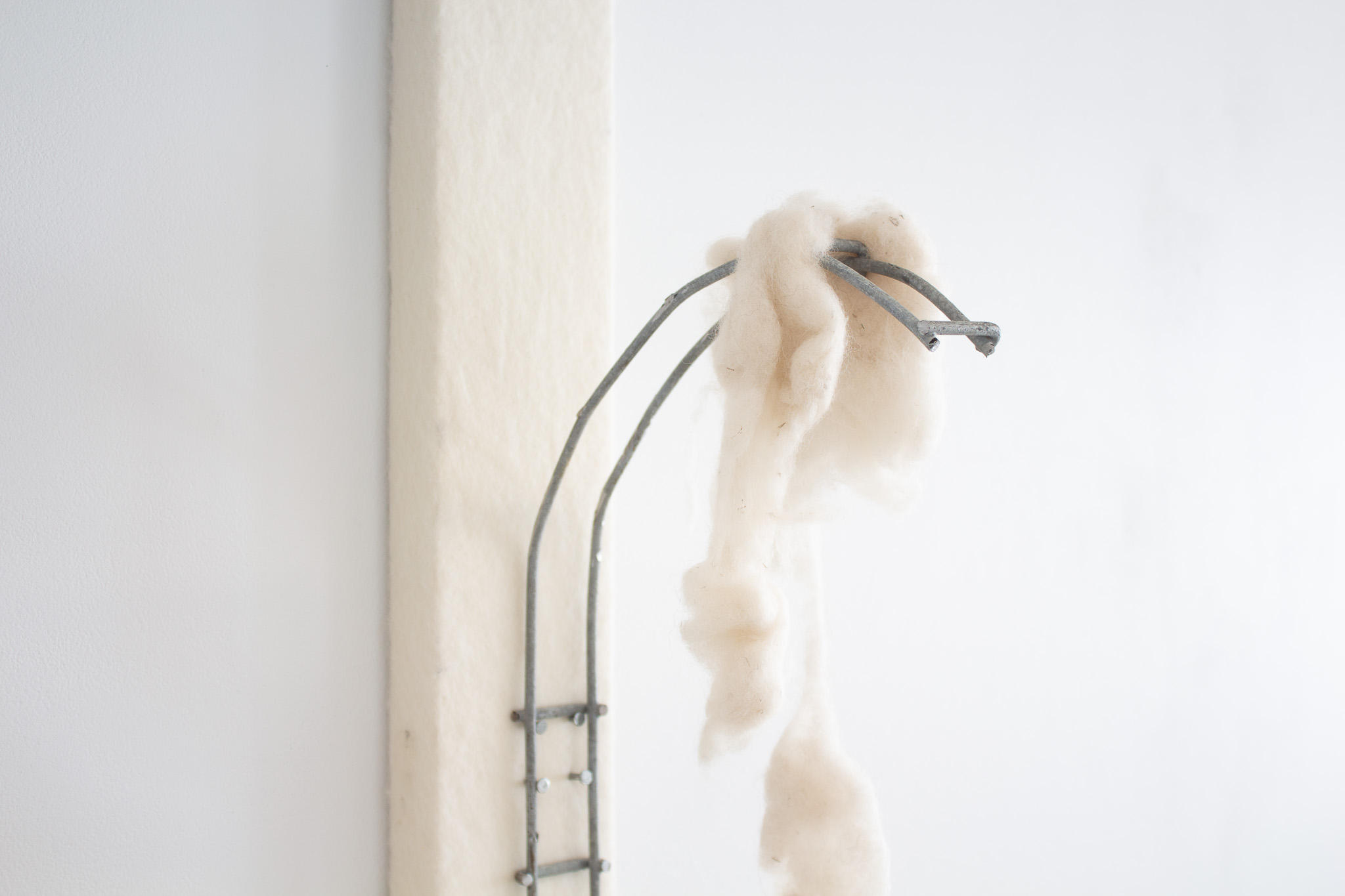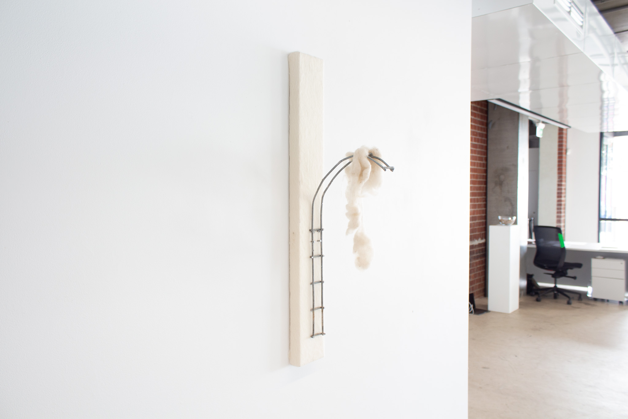 Federal Mill Column, 2023, wool, steel, felt on canvas, 11 x 86 x x 29cm.